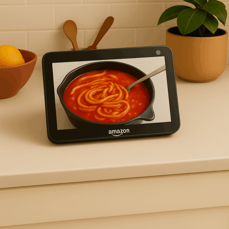 O que mais me surpreendeu foi a sensação de companhia. Pode parecer exagero, mas é verdade: o Echo Show 8 faz a casa parecer menos silenciosa. Dá para pedir uma música, ouvir notícias, ver vídeos, acompanhar receitas em tempo real, e até receber lembretes importantes. Para quem passa muito tempo sozinho, é quase como ter um amigo digital ali, sempre pronto para ajudar ou entreter. E, claro, a tela de 8 polegadas é um tamanho perfeito: grande o suficiente para ver vídeos e receitas de longe, mas sem ocupar muito espaço no balcão ou na mesa.