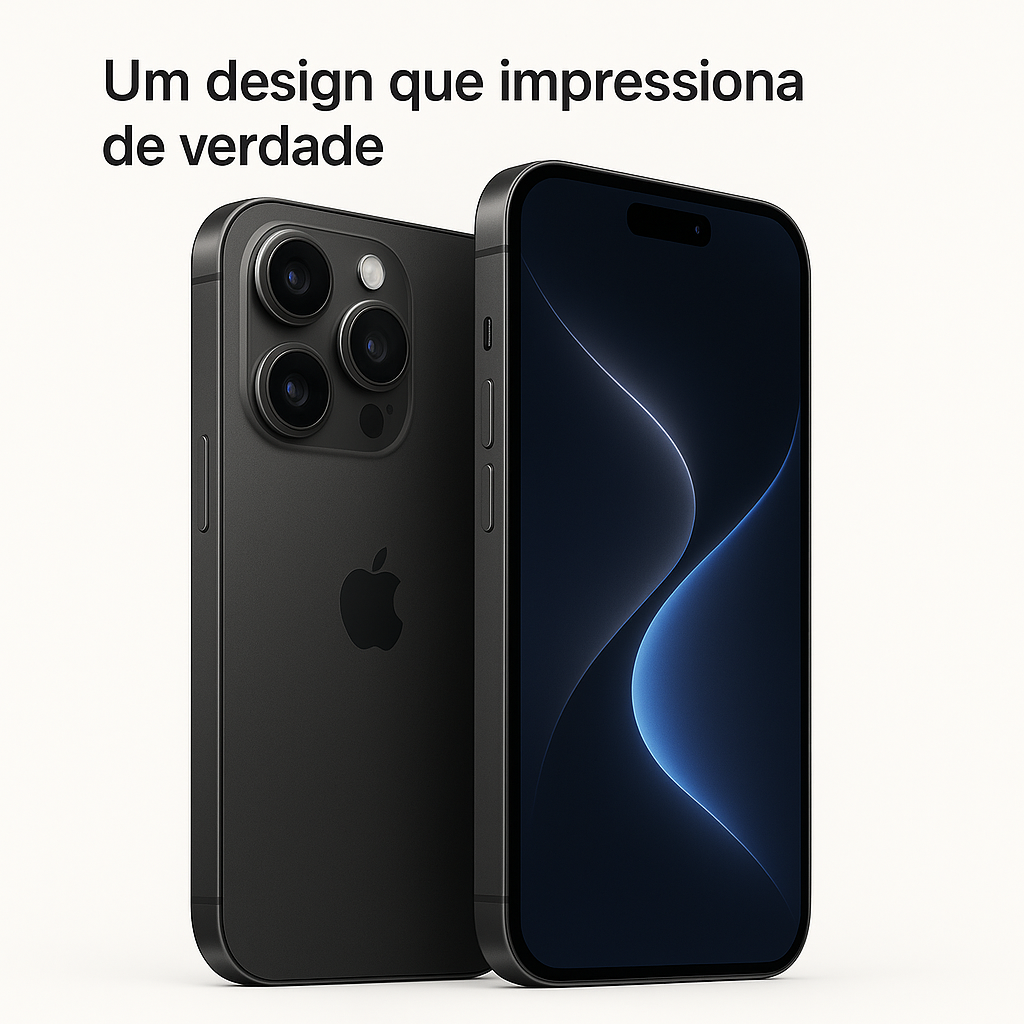 Sabe aquele celular que você tira do bolso e, só de segurar, já percebe o quanto ele é diferente? O iPhone 16 Pro Max tem esse efeito. O acabamento em titânio preto é elegante, discreto e transmite uma sensação de robustez que dá segurança. E o melhor: apesar de toda essa resistência, ele é surpreendentemente leve. Fica lindo em qualquer lugar – seja numa reunião importante ou numa saída casual.
